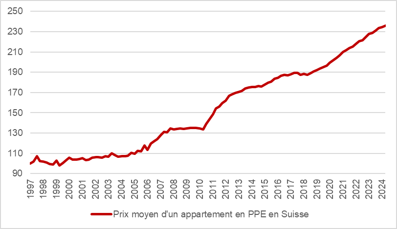Le résultat est inexorable : le prix de l’immobilier augmente, comme le montre ce graphique.