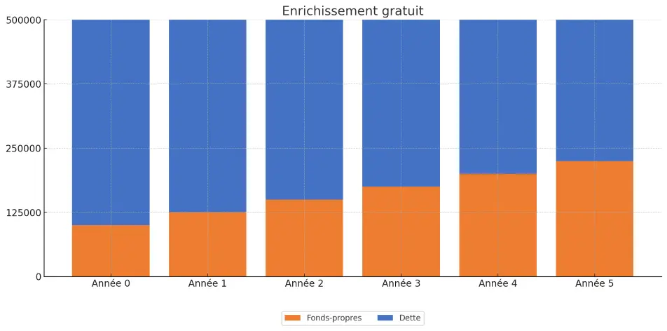 Bien entendu, vous devez rembourser cette hypothèque et payer des intérêts. Mais la magie, c’est que vous ne payez pas cela de votre poche mais avec l’argent que vous percevez des loyers. A mesure que vous remboursez l’hypothèque, la « part » du bien qui vous appartient augmente, ce qui vous dire que vous vous enrichissez.