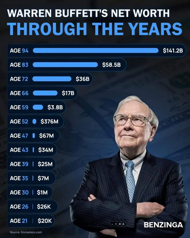Cela explique pourquoi Warren Buffett a construit la majorité de sa fortune durant ses vieux jours. Voici à quoi cela ressemble: