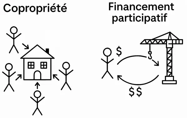 Ces plateformes permettent de réunir plusieurs investisseurs afin de faire des placements immobiliers. On peut distinguer deux types d'investissements sur ces plateformes: la copropriété et le financement participatif. La copropriété consiste à faire en sorte que plusieurs petits investisseurs acquièrent un immeuble de rendement et se partagent ensuite les bénéfices respectifs. Le financement participatif est différent car les investisseurs prêtent de l'argent à un promoteur afin de financer un projet de construction ou de rénovation.